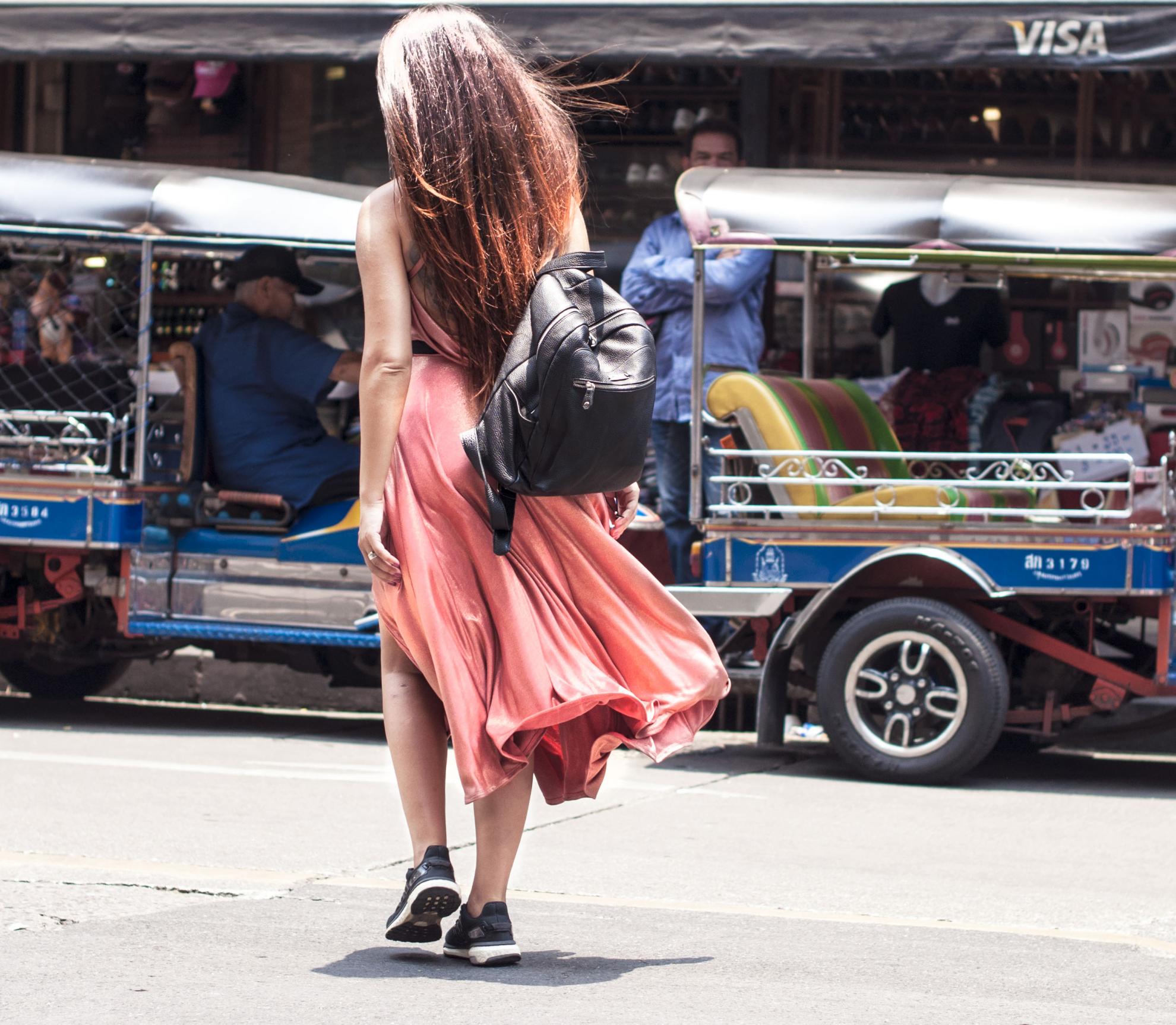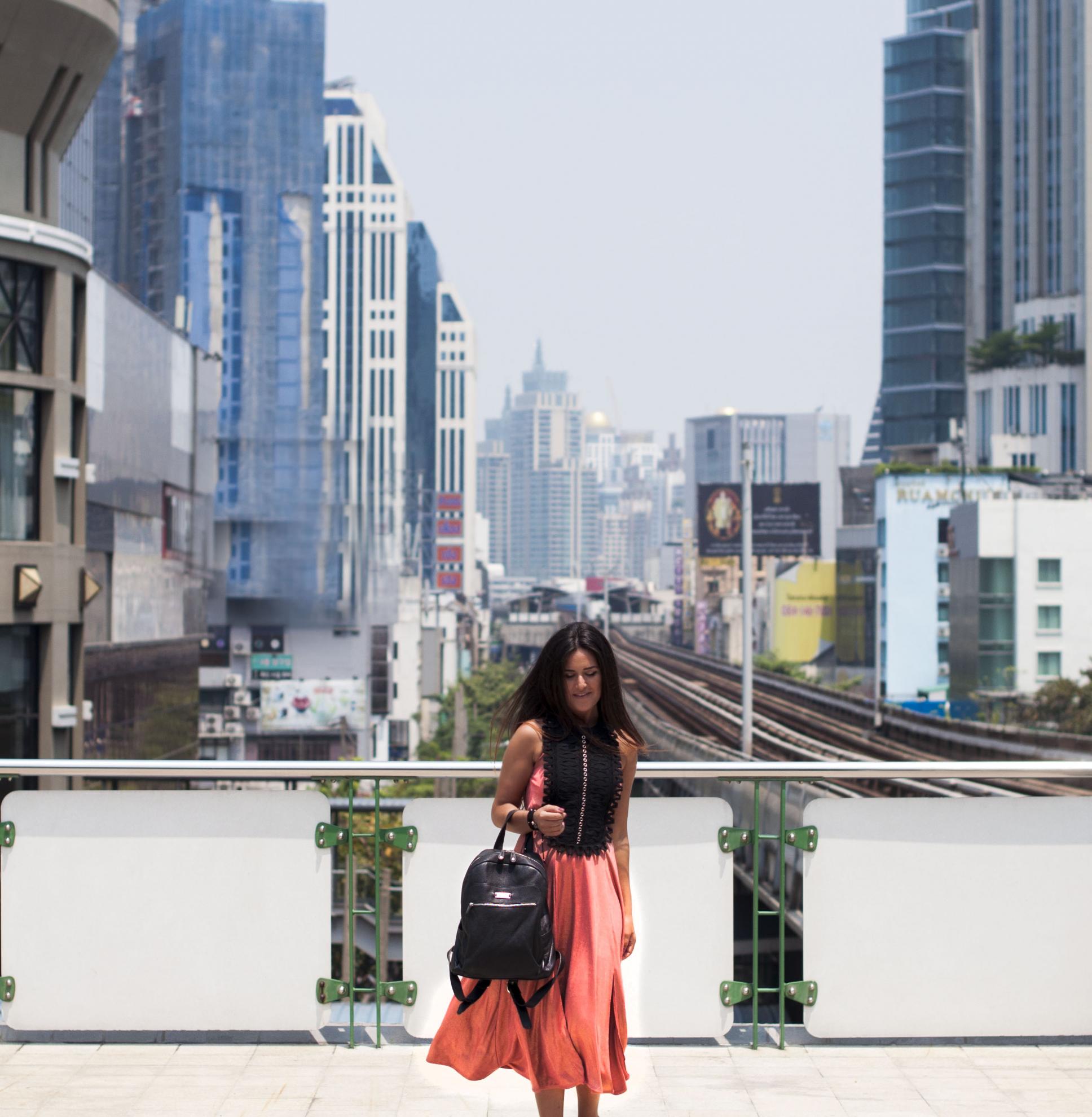 Pe Cristina parc-o stiu de-o viata. Culmea e ca ne-am cunoscut acum nici mai mult nici mai putin de … 2 ani. O si aud cum imi zicea atunci cu accentul ei ardelenesc: “Tu, scumpa, da’ de ce nu te-apuci de facut genti, tuuuu?” Iar eu ii raspundeam cu accentul meu de Ploiesti: “Lasa-ma naibii, Cristino, asta-mi trebuie mie acum?” Si iata-ma impletind povesti culese de prin triburi si facand ceva ce nu credeam vreodata ca voi face, datorita ei. Dar nu despre asta este vorba aici ci despre ghiozdanul acesta tomnatico-primavaratic plimbat printr-o caldura de putea sa topeasca munti in plina zi, in Bangkok. L-am primit cand eram in Borneo si de atunci il cam terfelesc de cate ori am ocazia. Asa-i cand le faci incapatoare si versatile, Cristino :)) Toata existenta ei e legata de genti si nu-si vede viata altfel. Trasneste, pufneste, plange si se bucura si tot ceea ce traieste are forma de geanta