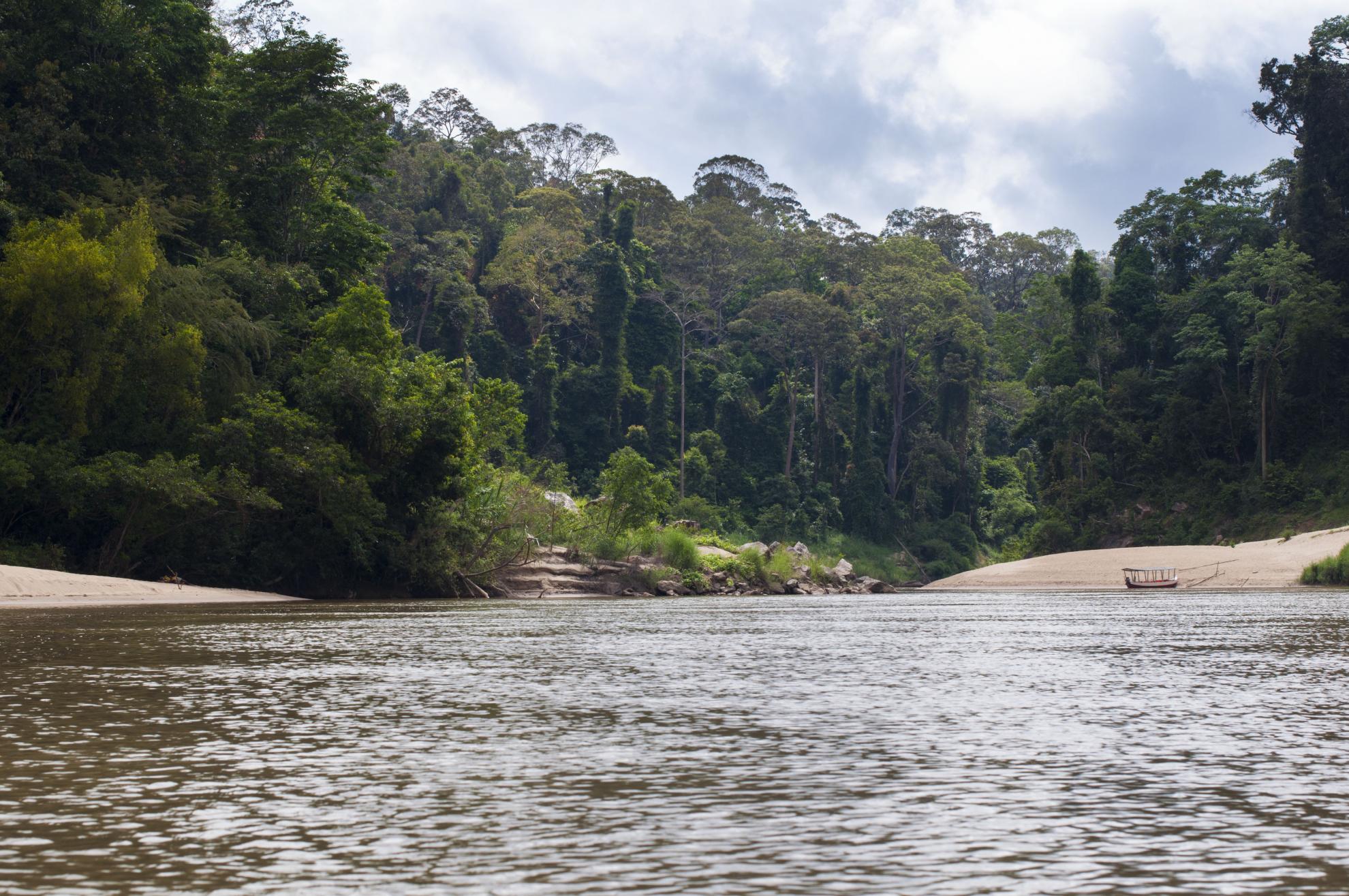 Van-ul te lasa in Jerantut unde pana la ora 13 trebuie sa-ti astepti barca ce te duce spre Kuala Tahan. Intre timp poti sa faci toate formalitatile de intrare in parc, sa-ti platesti taxa de fotografiat, taxa de intrare si sa-ti achiti prin POS toate excursiile, daca n-ai bani pesin ca subsemnatii. Trebuie sa declari al cui esti, cum te cheama, unde stai si ce vant te aduce pe aici. In fine, dupa toate astea esti urcat intr-o barca unde n-ai vrea sa fi urcat dar n-ai alta solutie si transportat pret de vreo 4 ore pana in Kuala Tahan. Kuala in sus Kuala in jos, am intrebat ce-nseamna si va spunem si voua, este locul unde doua rauri se intalnesc si formeaza un estuar.