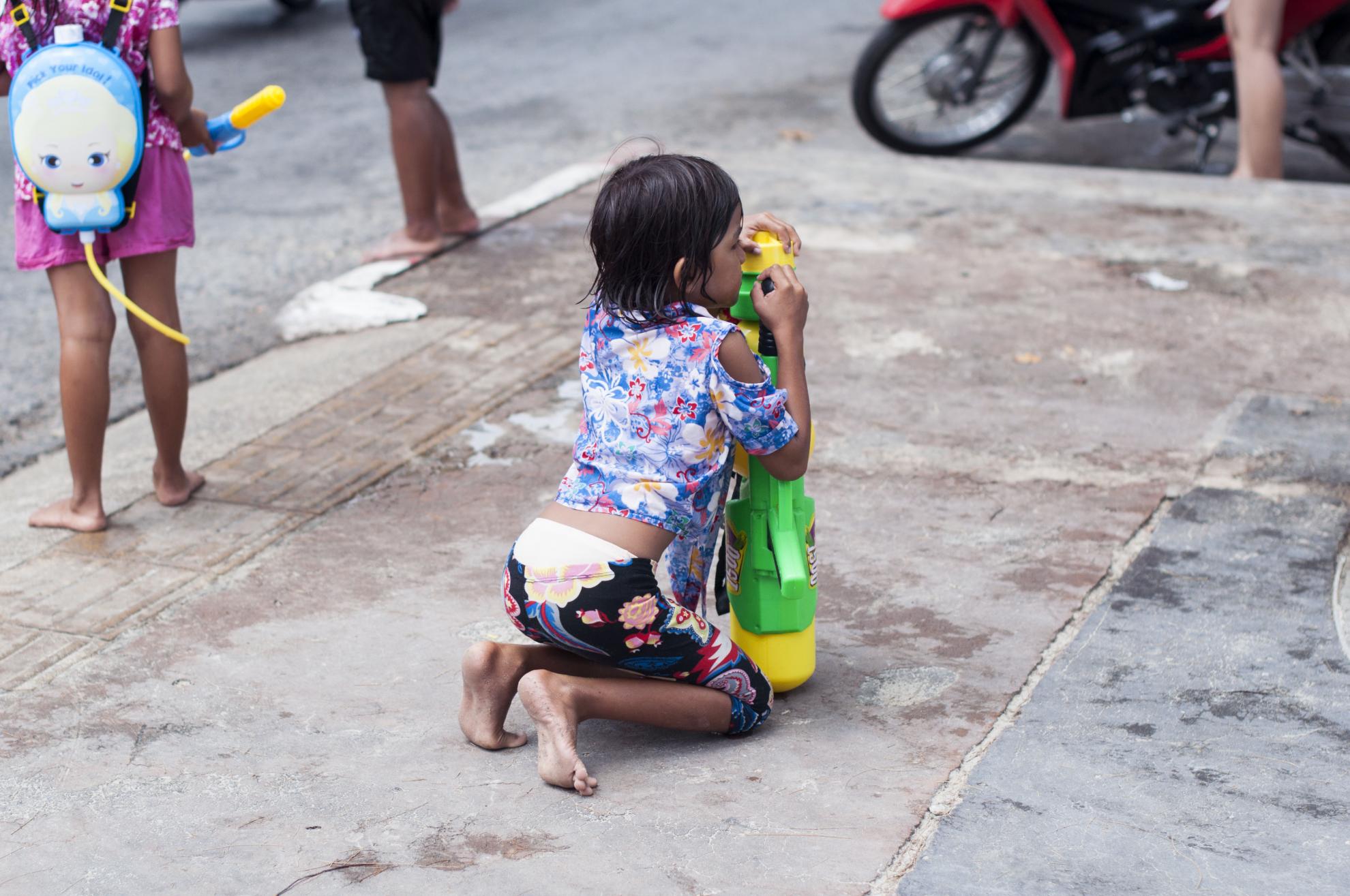 Mai, si au obiceiul sa cumpere gheata si sa te stropeasca cu apa rece cand ti-e lumea mai draga. Pai-i frumos asa, sa te trezesti c-un sloi de apa inghetata pe sira spinarii? Ce nu ne-a placut insa, e ca te poate nimeri un ditamai jetul in lumina ochilor si daca ai ghinion, poate sa fie si sarat, ca doar daca esti insetat de bataie cu apa, o sa te arda rau la buzunar cei 10 baht cat costa un refill al armei din dotare. Si ca orice manifestatie ce te lasa sa dai frau liber vendetelor personale si frustrarilor de orice fel, se lasa cu vanatai, sunete de sirene, accidente, drumuri blocate, certuri, scandaluri, batai, spitalizari. Am fost feriti de probleme cu exceptia unui lighean luat in plina mufa de la un frate indian, care m-a facut sa vad stele verzi si sa cred pentru o secunda ca m-a lovit acceleratul.