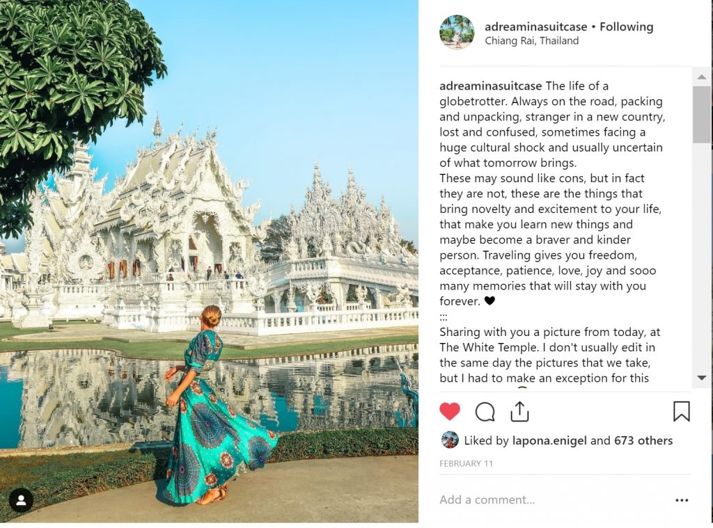 O gasiti aici: https://www.instagram.com/adreaminasuitcase/